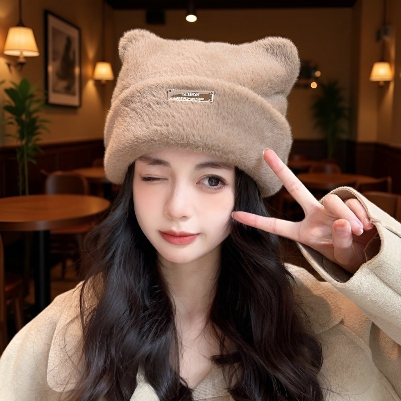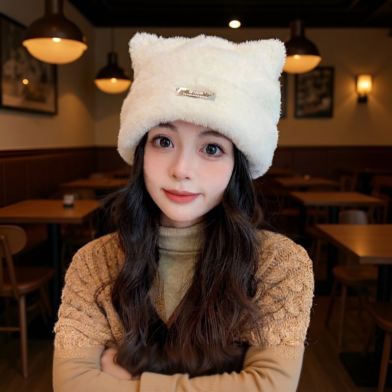여성 빅터틀 비니 패션 밍크털 라이크 보온모자 귀여운 고양이 귀달이 비니
